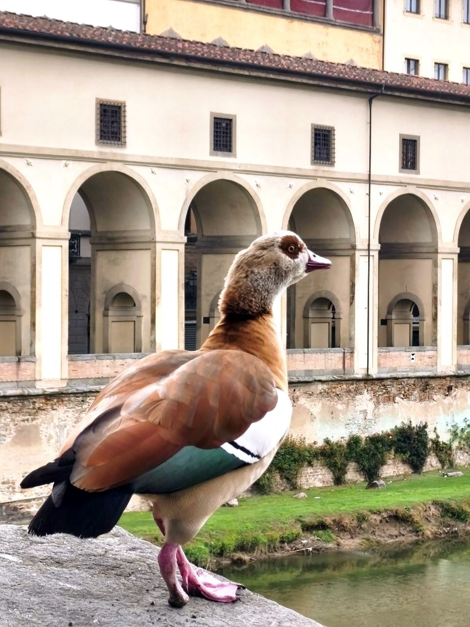 Дикая природа (египетские гуси, Alopochen aegyptiaca) сумела интегрироваться в исторический ландшафт Флоренции, разве это не чудо?