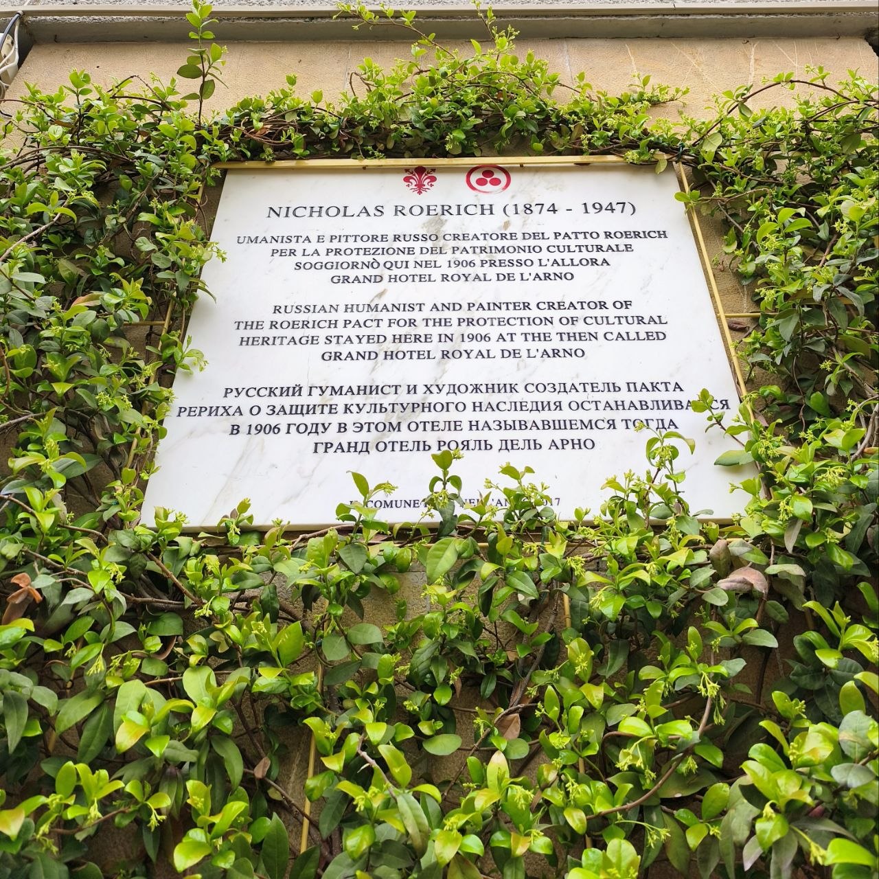 Рерих останавливался во Флоренции в 1906 году во время своего путешествия по Италии, но только в 2017 была установлена мемориальная доска на стене гостиницы, которая когда-то называлась Grand hotel Royal de l'Arno, современное название - Hotel Portrait.